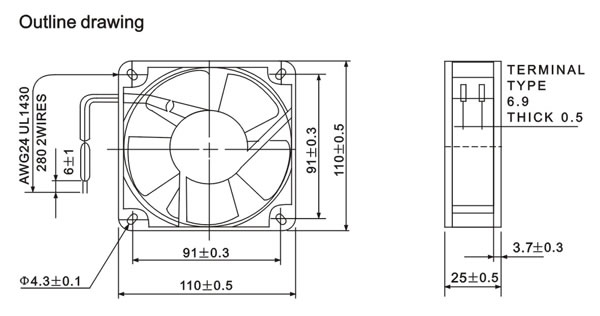 | 110X110X25 | PD110S-110 | 115 | 50 | 0.16 | 17 | 2100 | 47/1.30 | 0.13 | 31 | 310 |