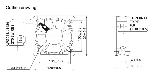 | 120X120X38 | PD120S-110 | 115 | 50 | 0.25 | 25 | 2500 | 87/2.46 | 0.23 | 46.5 | 515 |